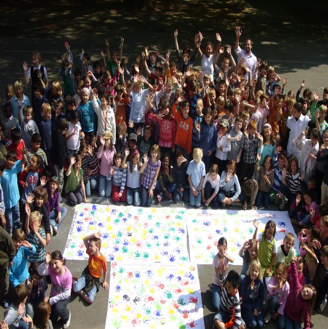 Bringt so viele farbige Hände wie möglich auf Leinwand oder Stoff, Banner oder Tüchern, dokumentiert Eure Aktion und sendet dem Verein Gegen Kinderarmut e.V Fotos oder Videos vom Aktionstag zu!