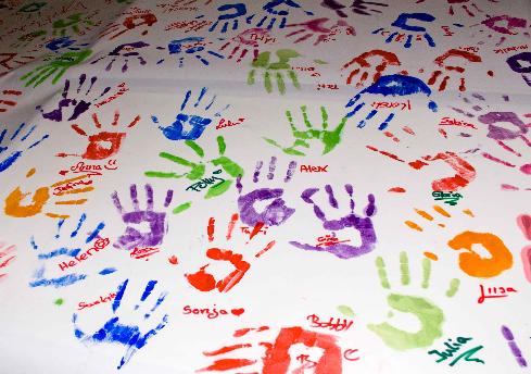 - bringt so viele farbige Hände wie möglich auf Leinwand oder Stoff, Banner oder Tücher und dokumentiert Euren Einsatz! Zum Weltkindertag 2009 möchten wir alle Handabdrücke als "Gesamtwerk" unserer Regierung überreichen.